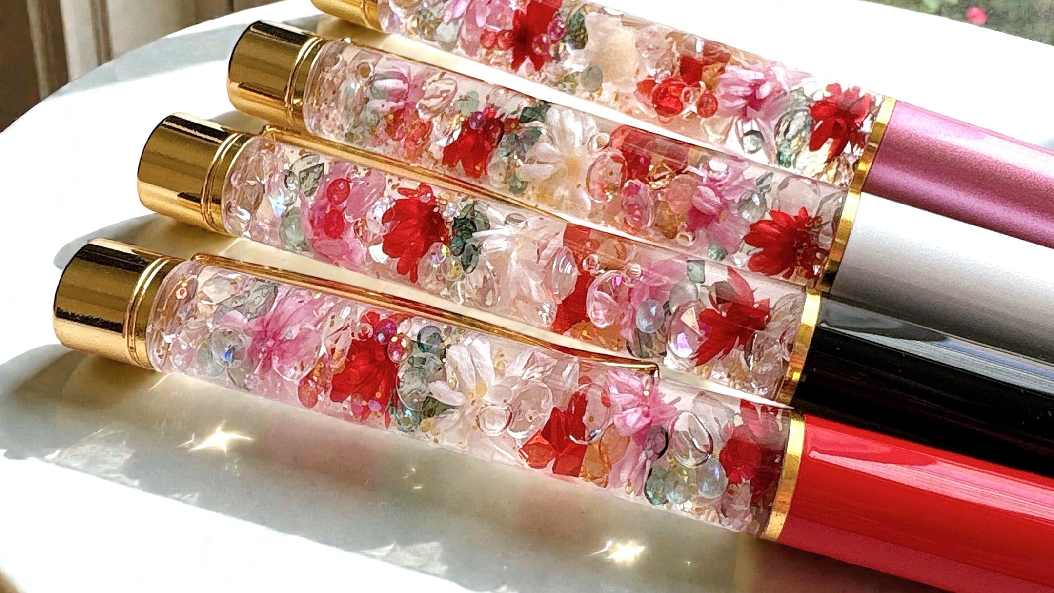 Dewdrop Bloom – ハーバリウムボールペン 選べるチャーム / 替え芯 クリアケース付き