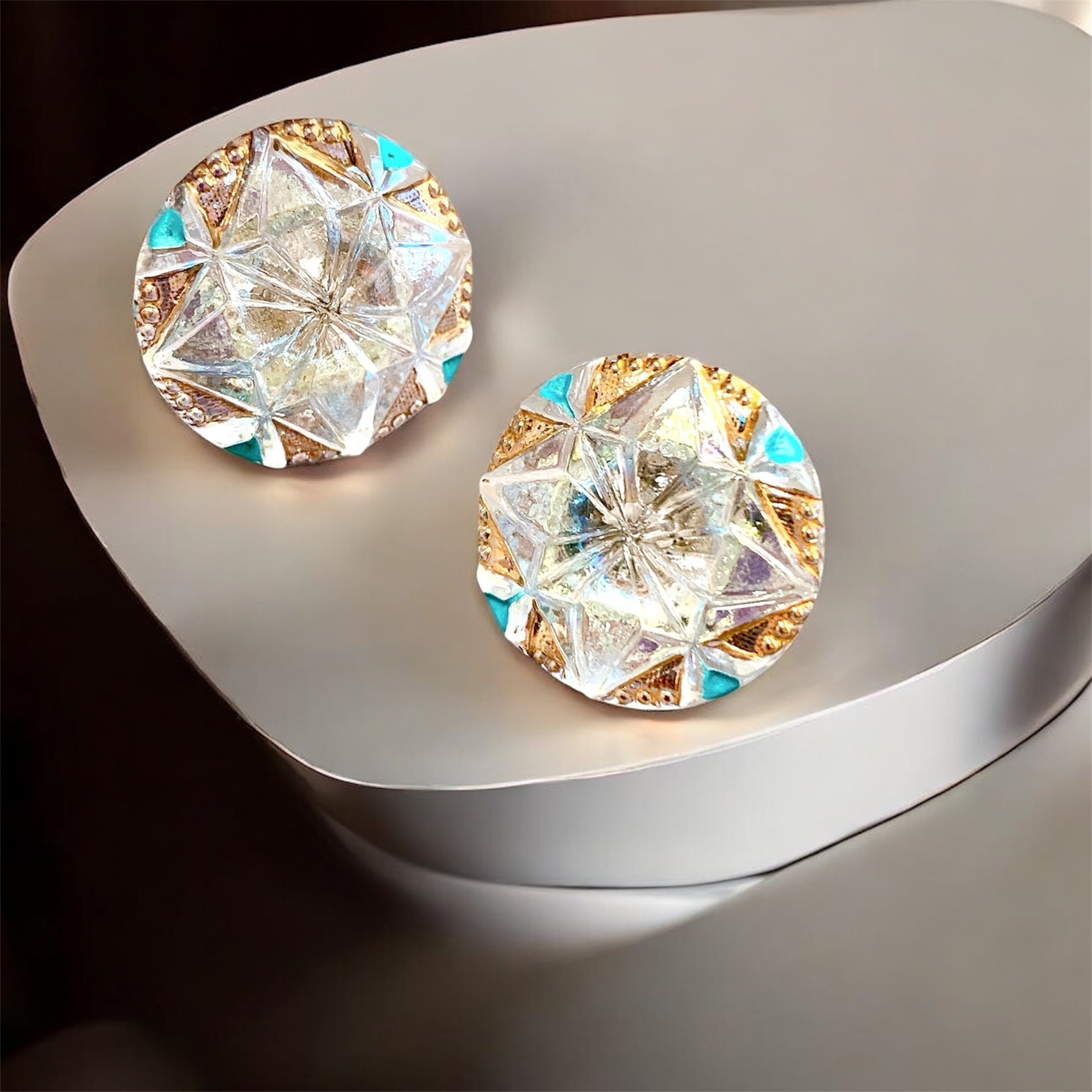 透明感あるガラスが光を受けて優しく輝き、胸元に清らかな存在感を添えてくれます。