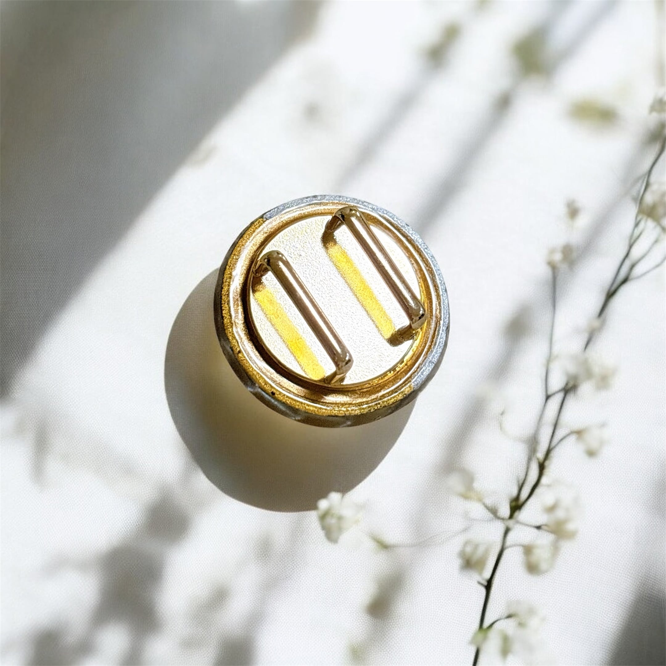 温かみのある琥珀ゴールドとシルバーの色合いが