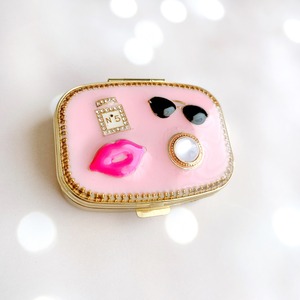 宝石箱のようなジュエリーケースには、小さなピアス・イヤリング・指輪やネックレスの他にもピルケース としてサプリメントやお薬も入れられて、ご旅行などの持ち運びの際もとっても便利です