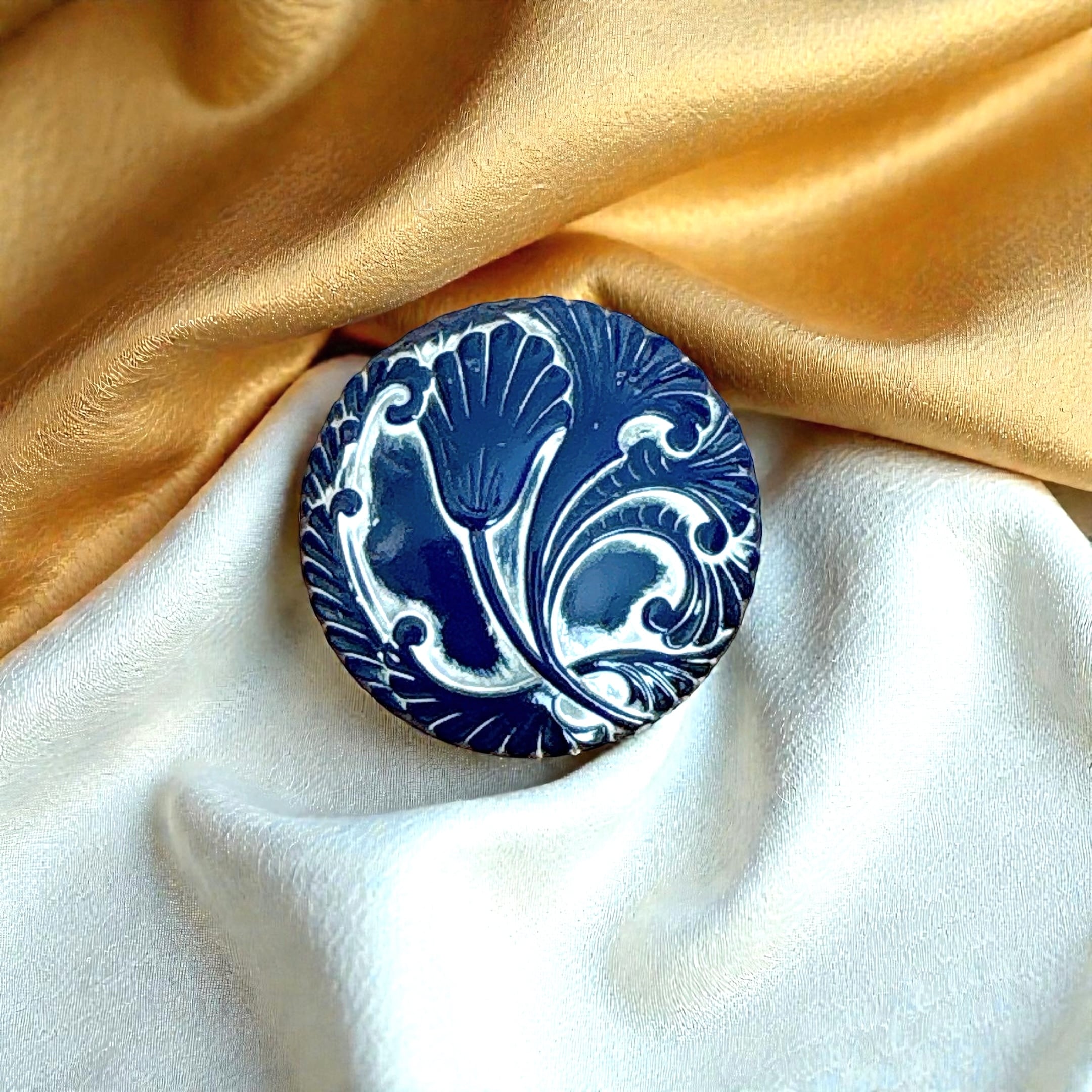 チェコガラスの帯留め 「蒼華 -Souka-」。