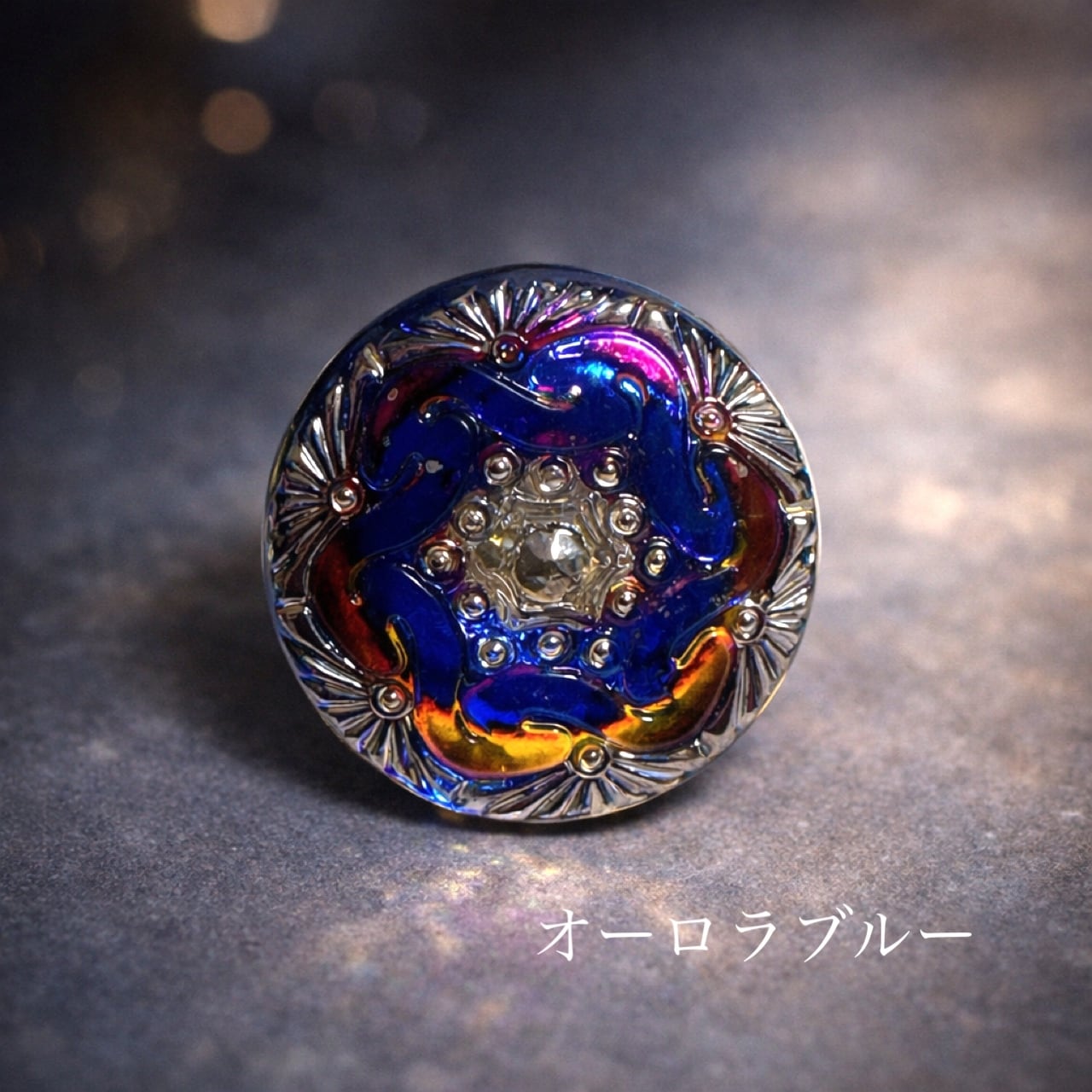 オーロラブルーは、光の角度によって青や紫、金色が揺らぐ華やかな表情。