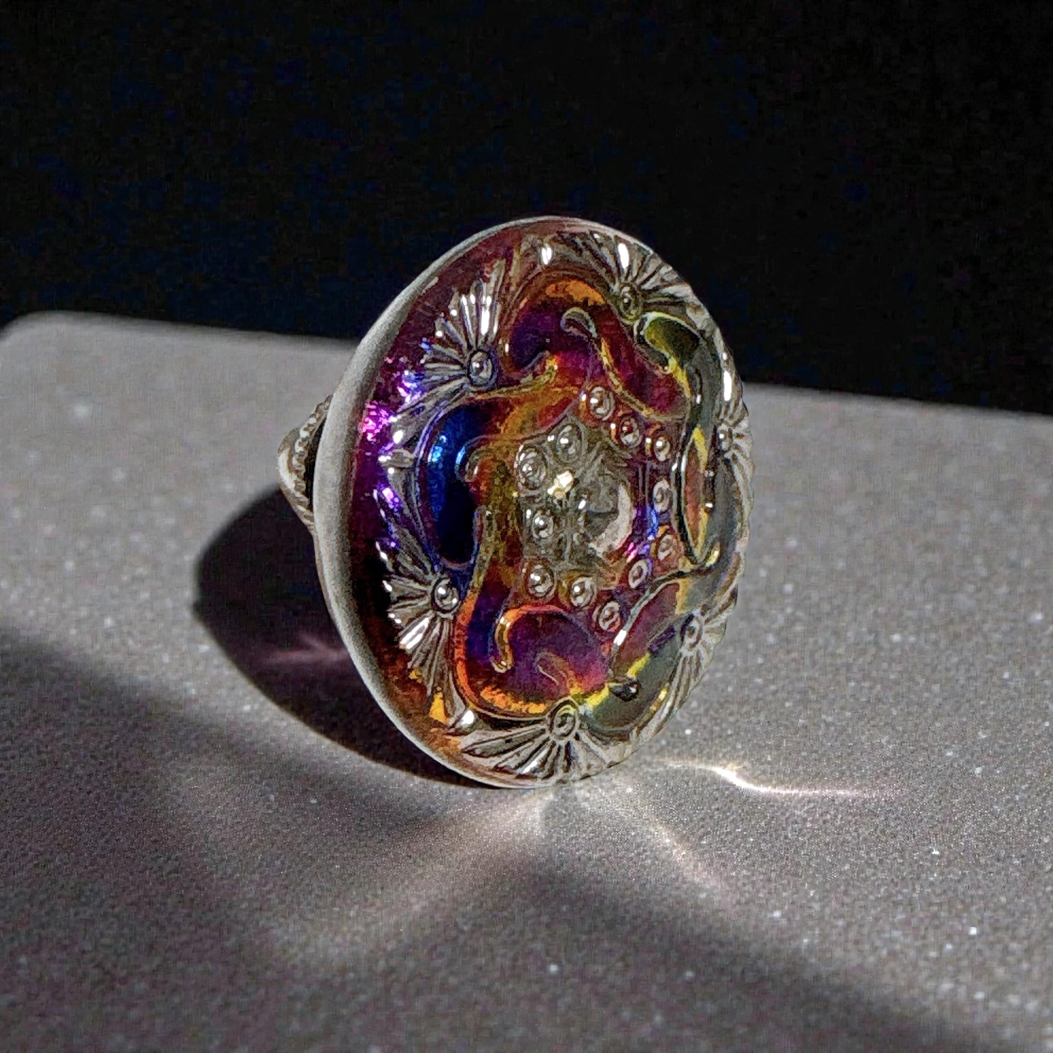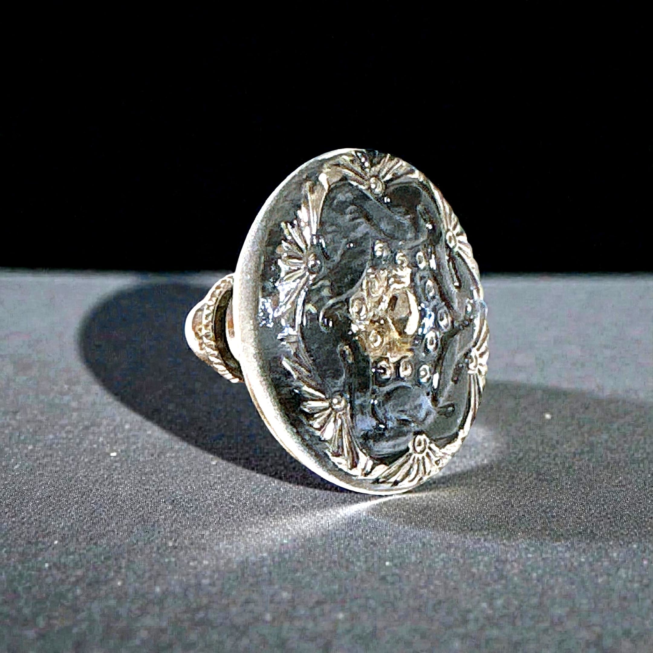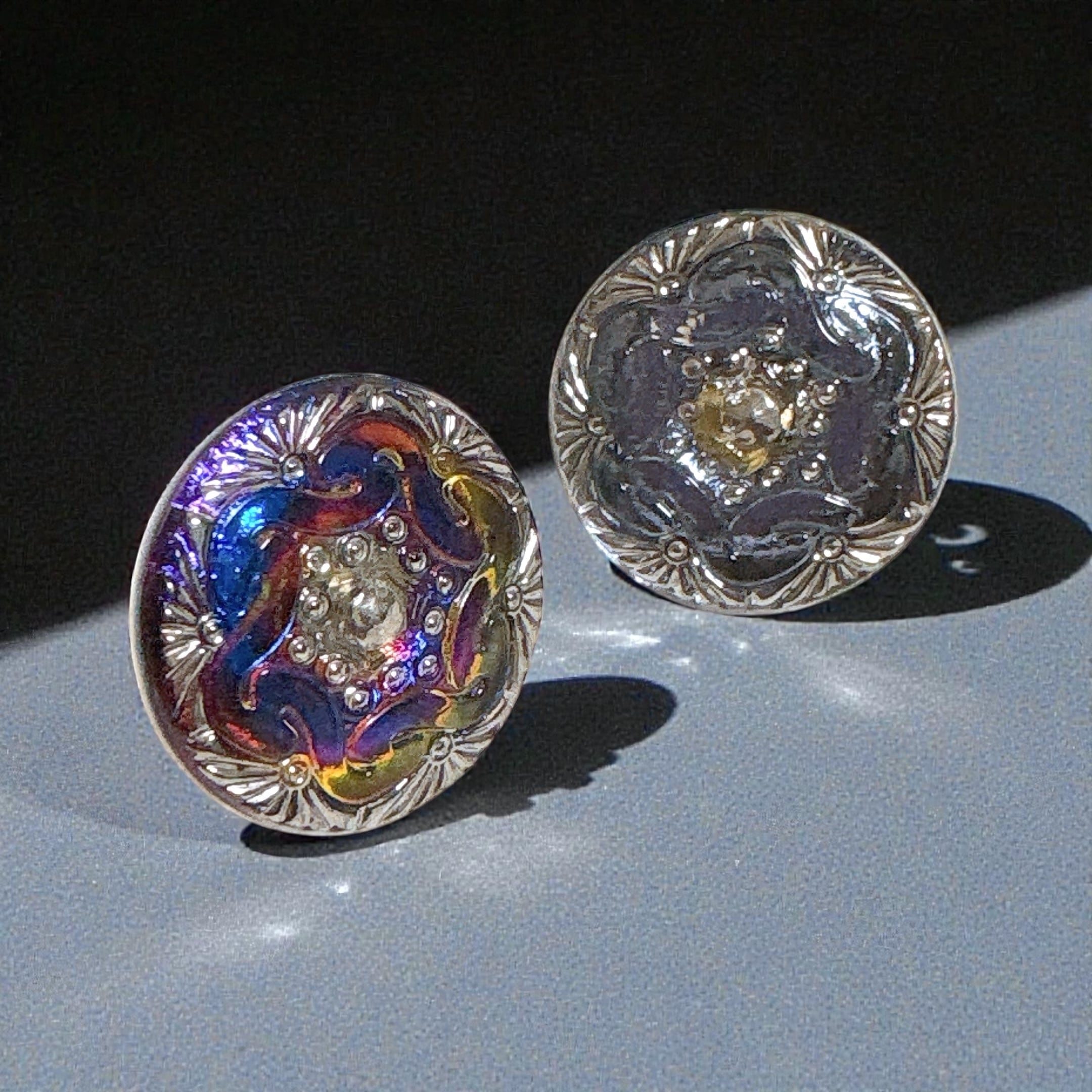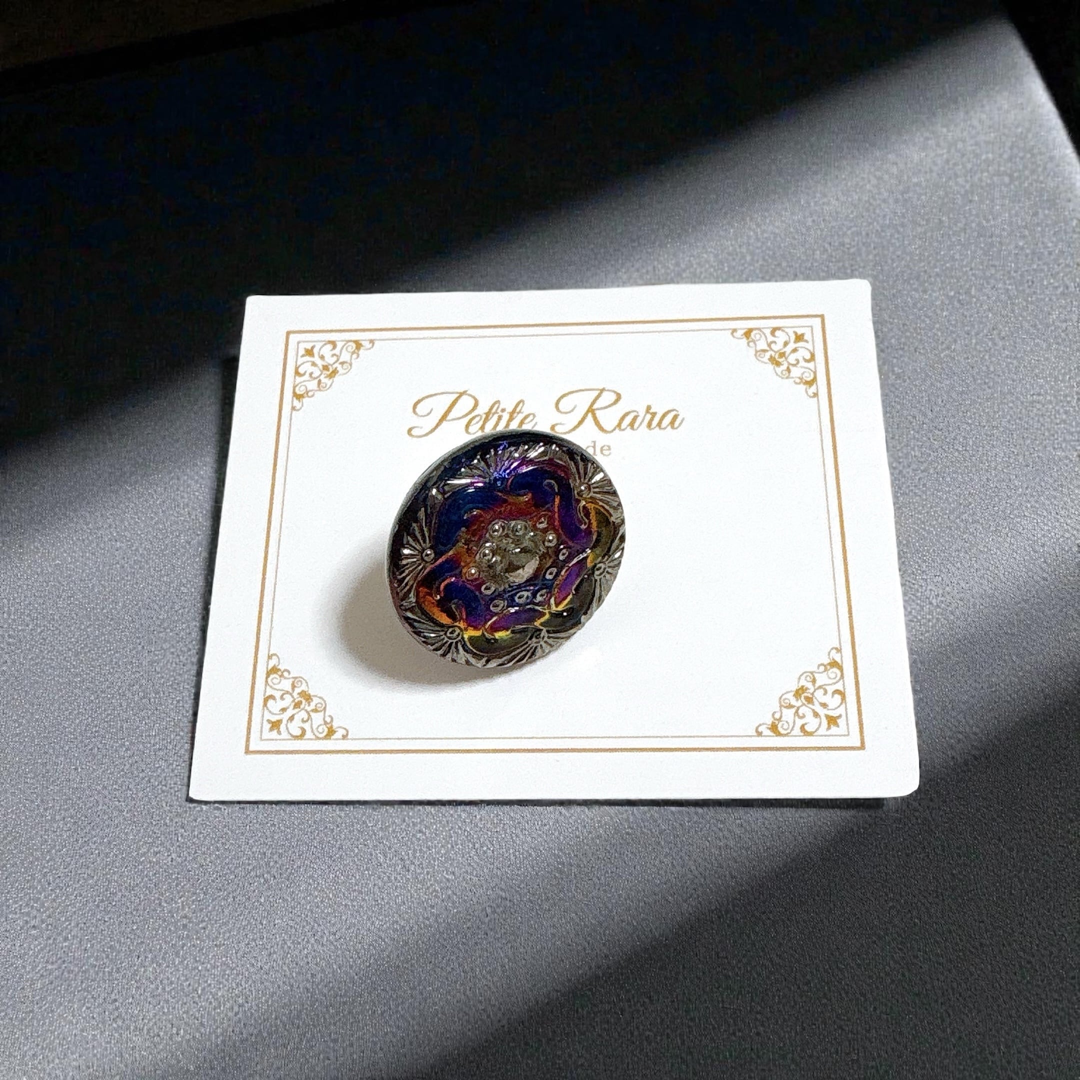 ふたつの気配をひとつに閉じ込めた、チェコガラスのタックピンです。