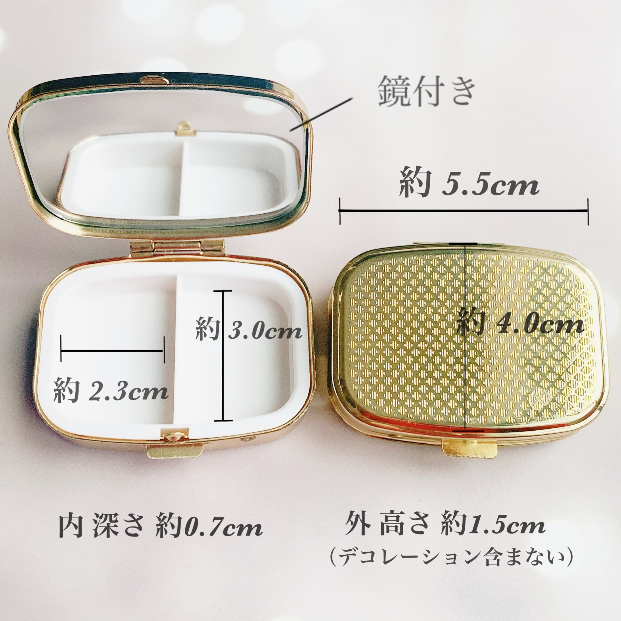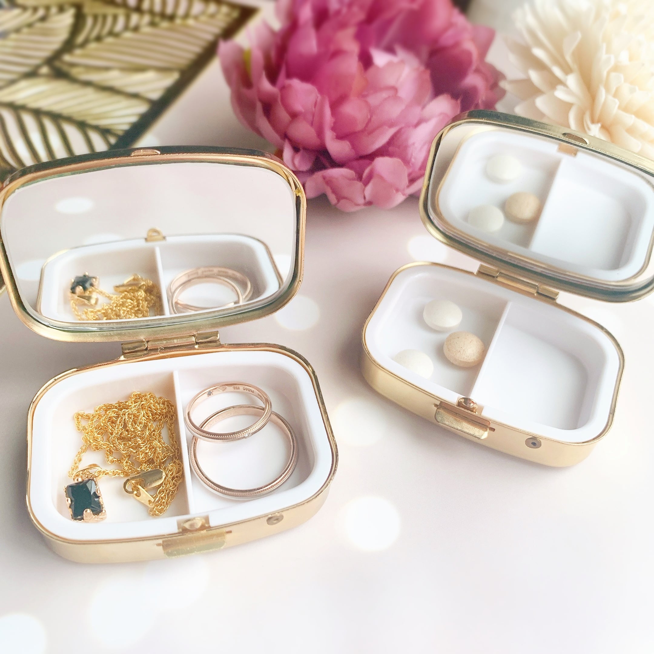 ご旅行中の指輪やネックレス、小さなピアス・イヤリングの保管のほか、普段使いにはお薬やサプリメント、ピルケースとしても幅広くご使用いただけます。
