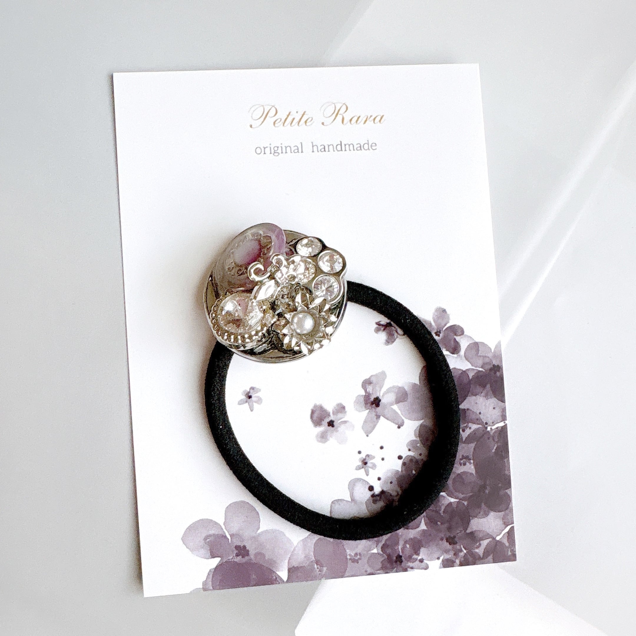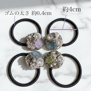 パープルボタン装飾のヘアゴム(シルバー)No.002| Botonique