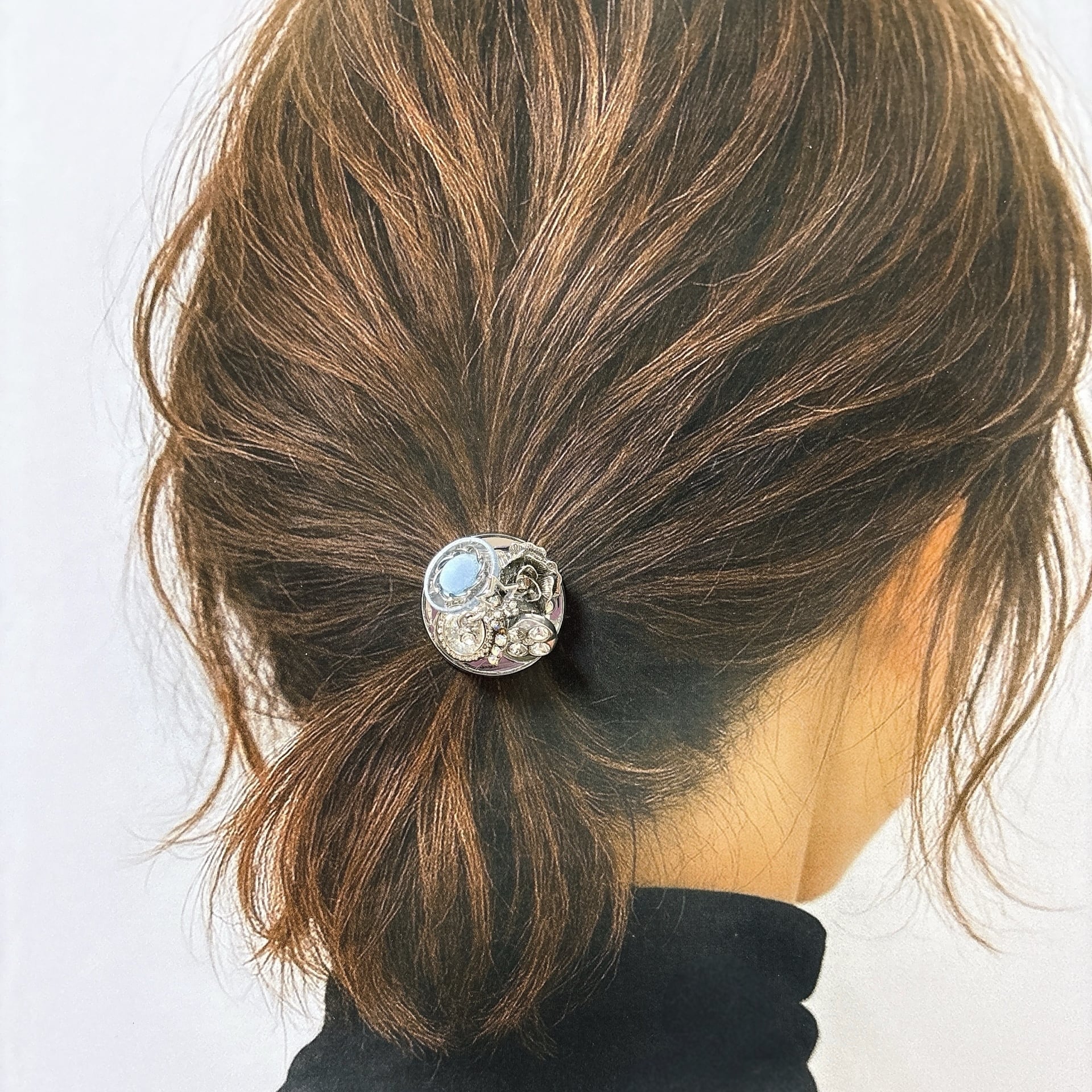 ブルーボタン装飾のヘアゴム(シルバー)No.003| Botonique