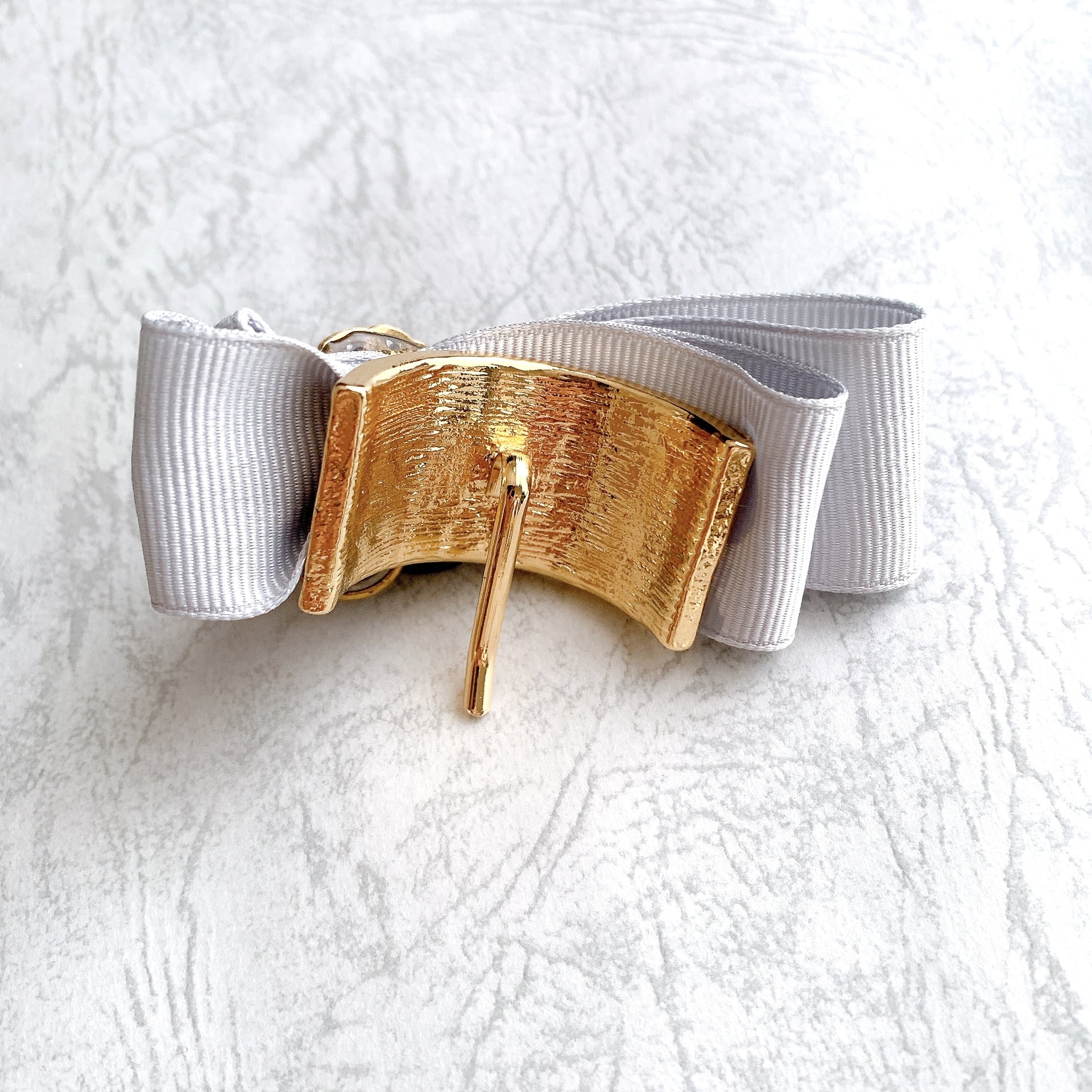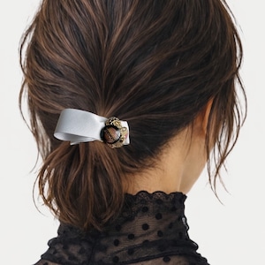 上質なリボンを合わせて仕立てたポニーフックです。