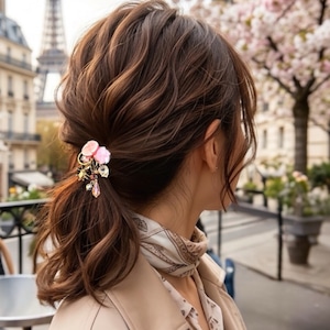 桜のやわらかな色合いを重ねて仕立てたポニーフックです。