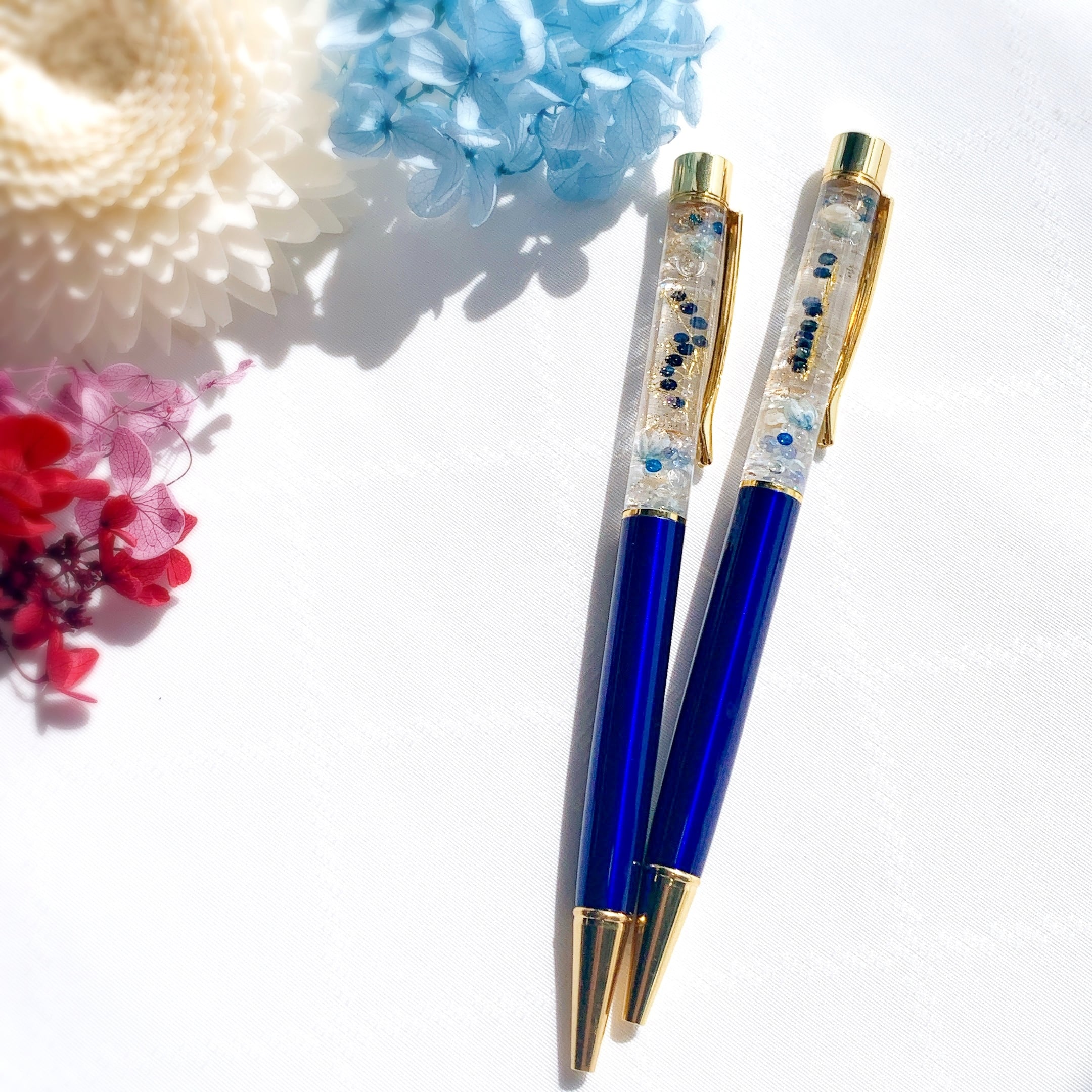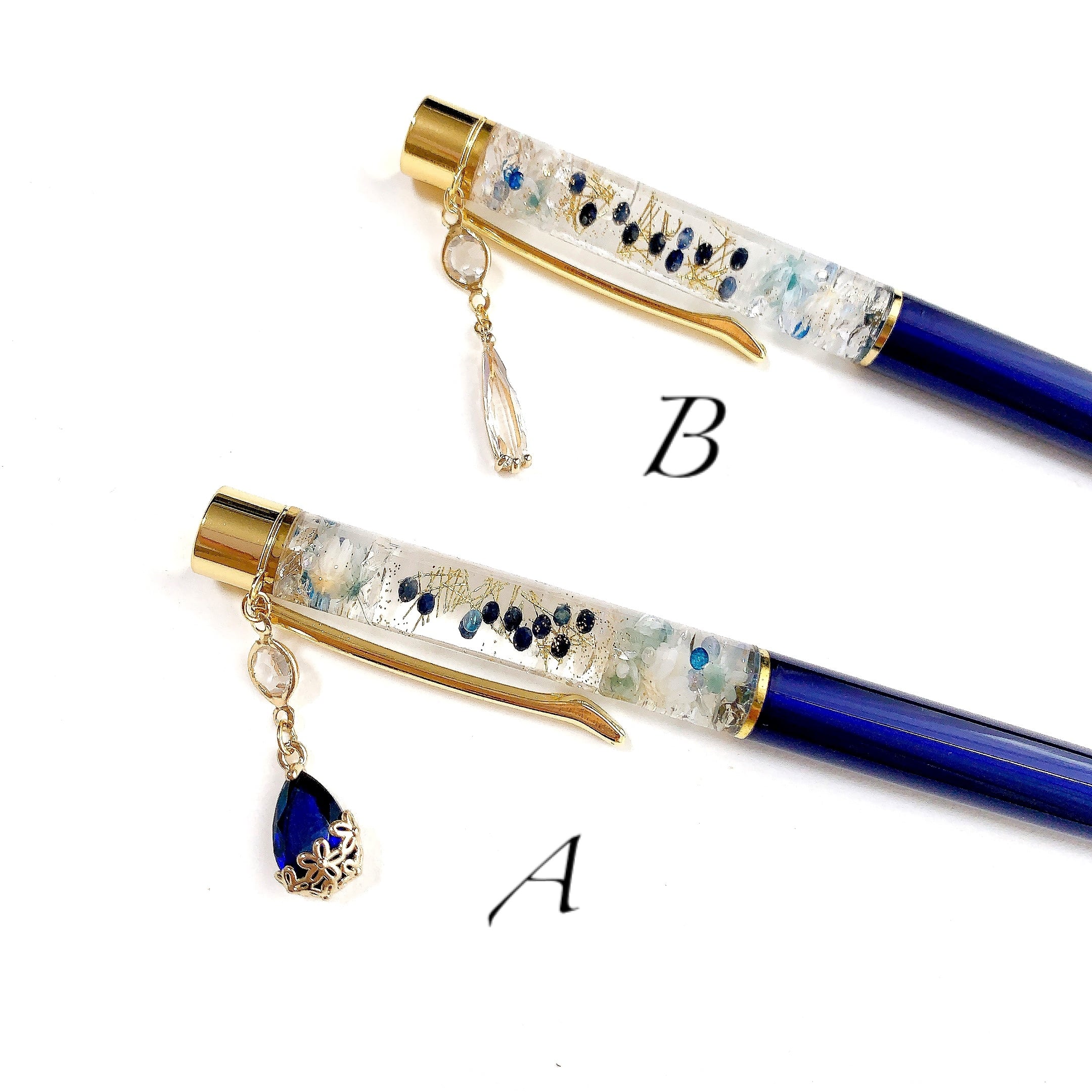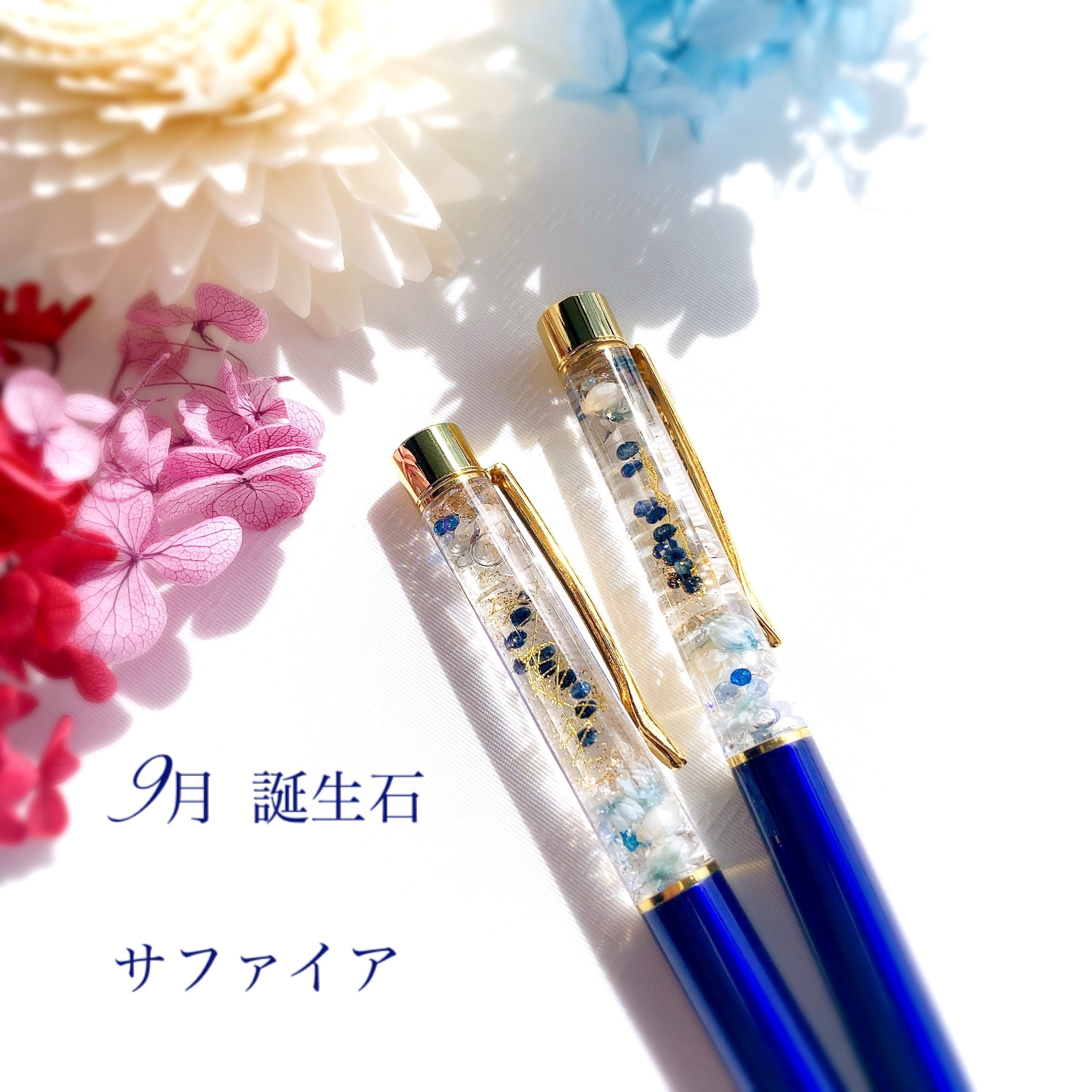 【9月 誕生石 サファイア】天然石のハーバリウムボールペン 替え芯付き / 選べるチャーム