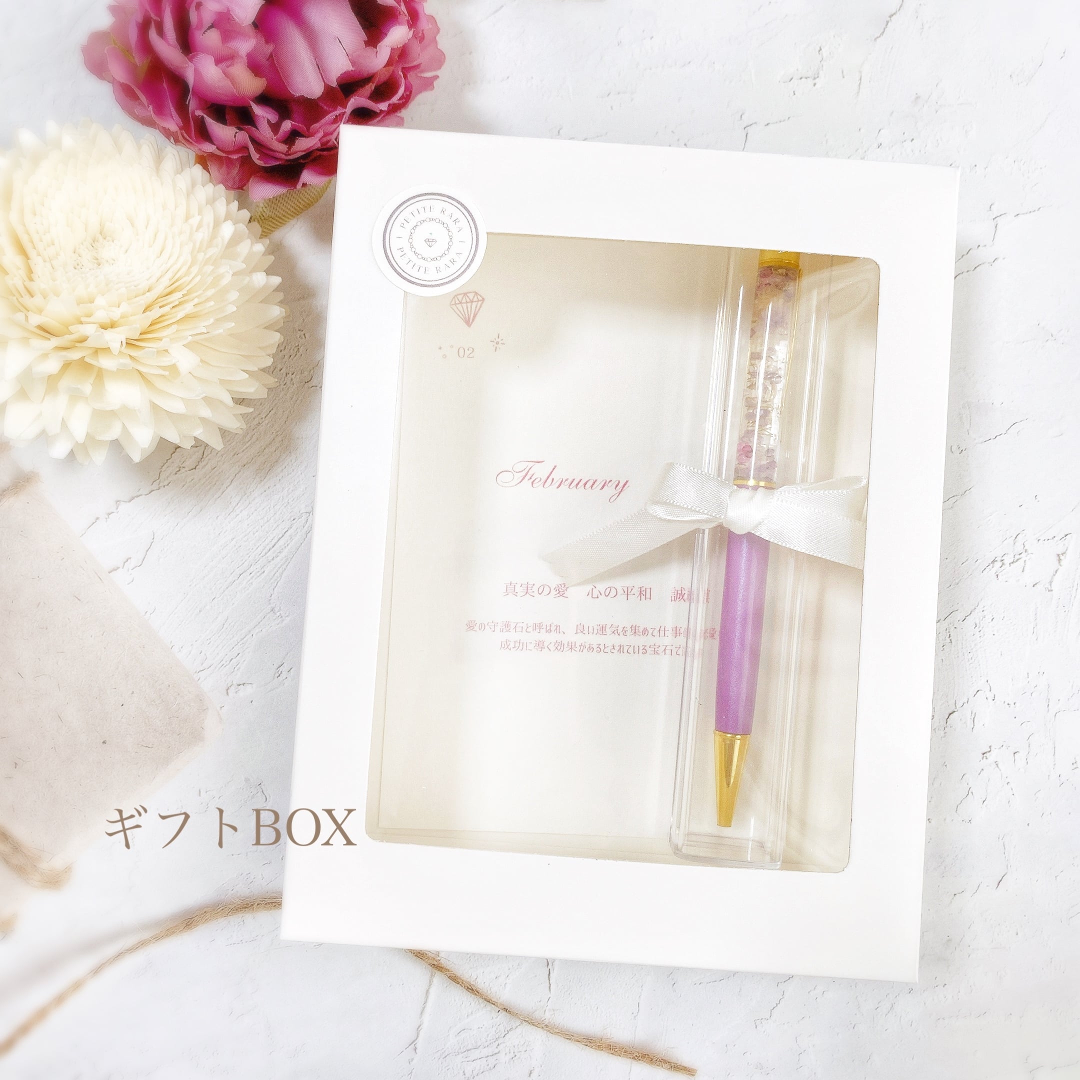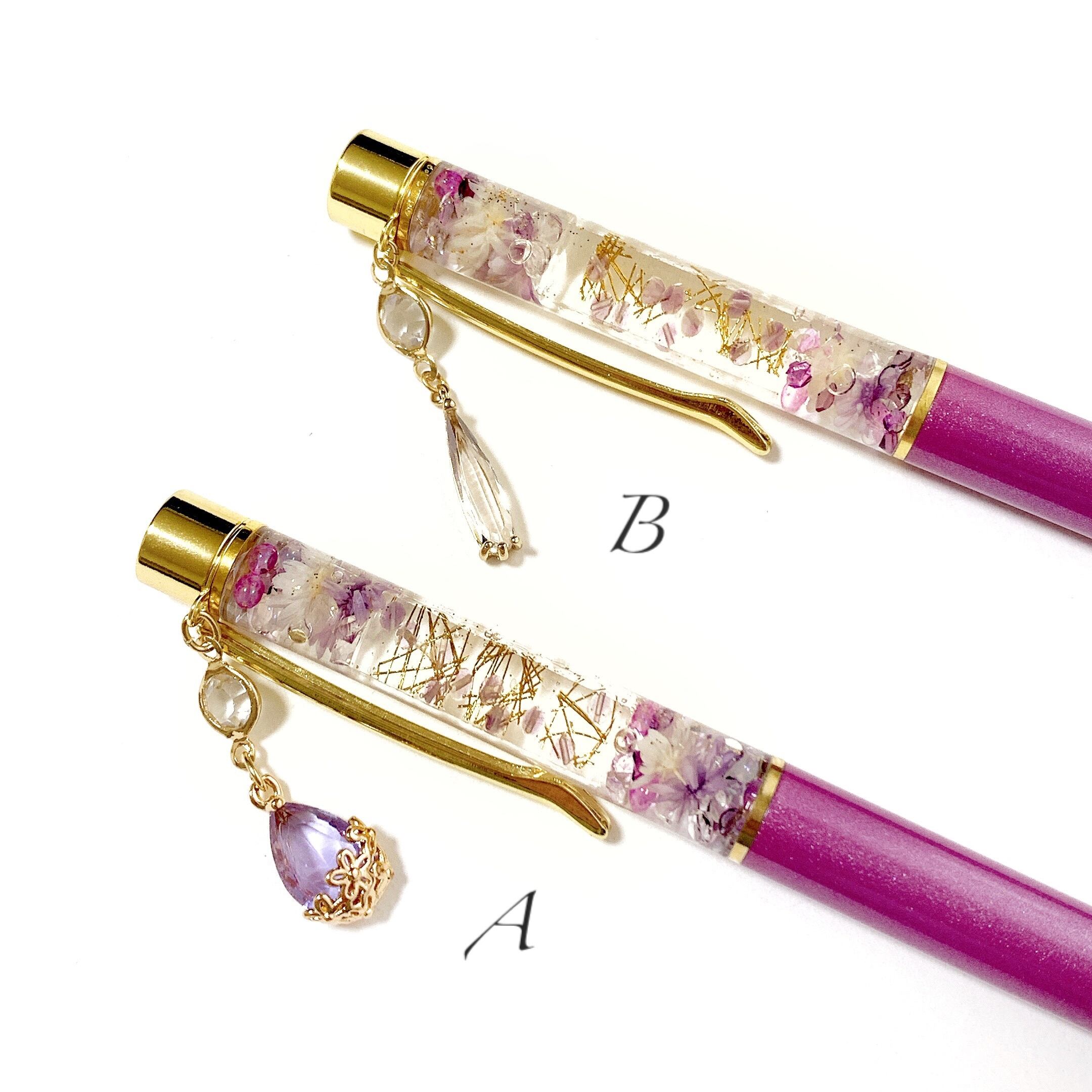 【2月 誕生石 アメシスト(アメジスト)】天然石のハーバリウムボールペン 替え芯付き