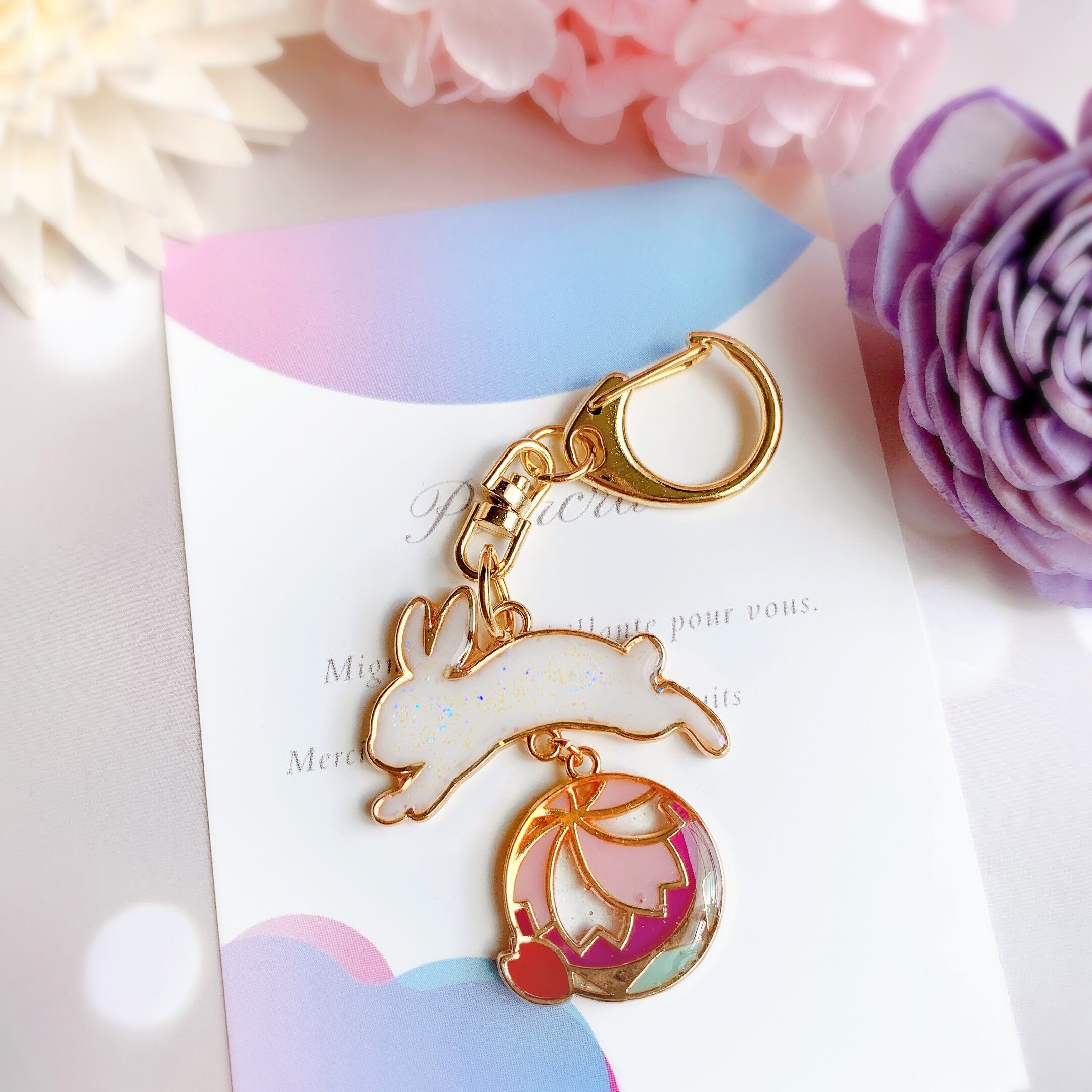 鞠と桜とうさぎ キーホルダー / ゆめかわの世界 プティララ