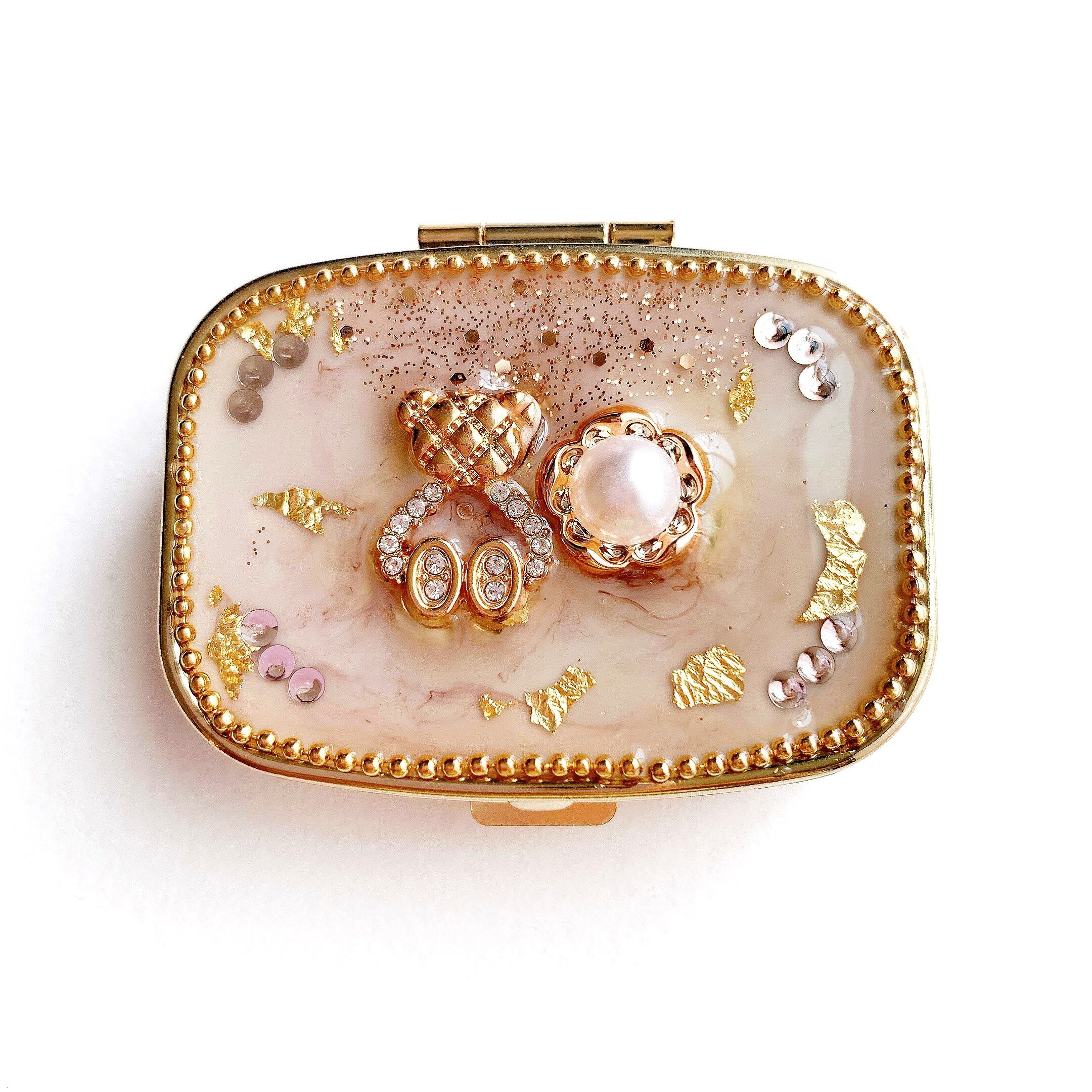 ジュエリーケース 宝石箱 くまさん 鏡付き / マーブル キャメル petiterara