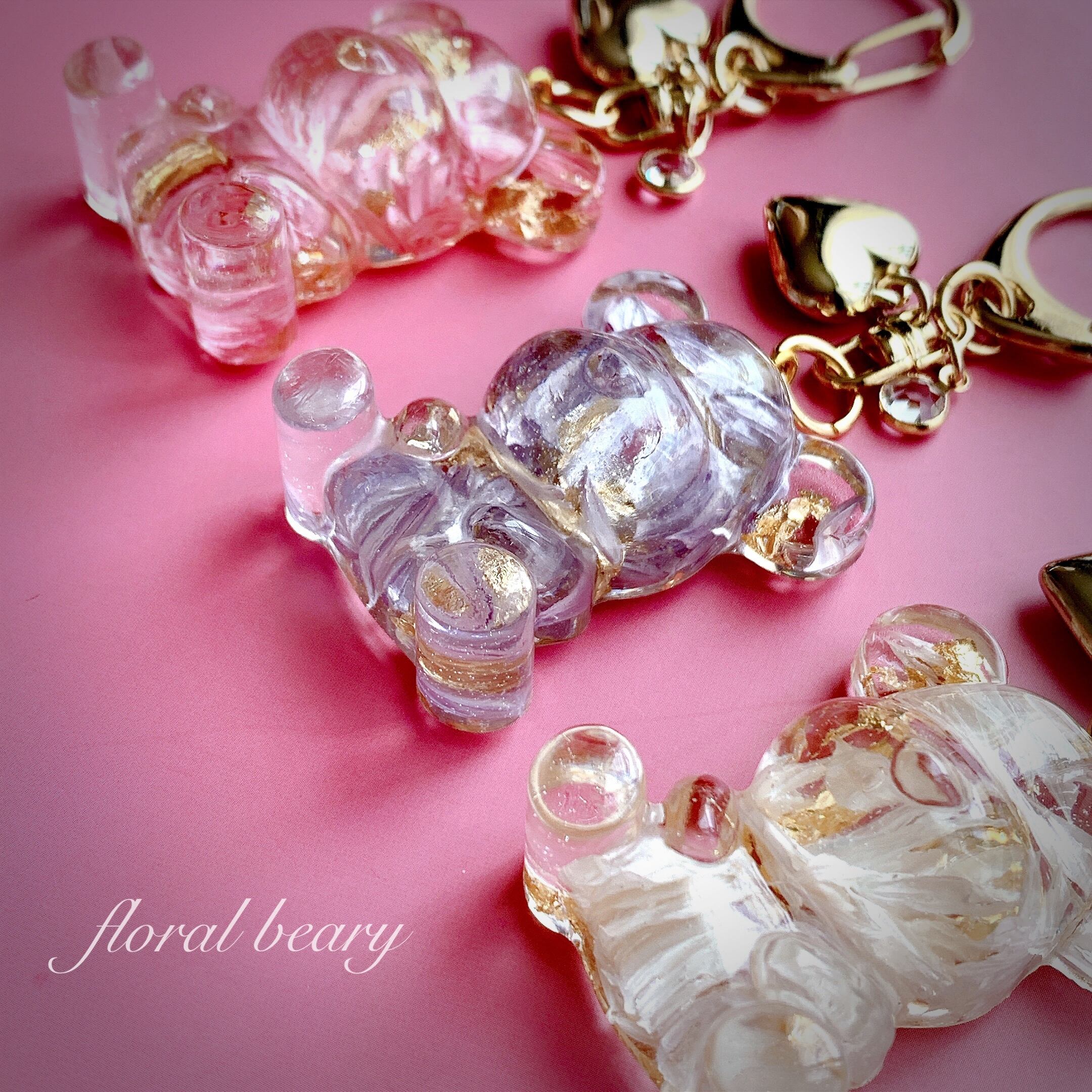 フローラル ベアリー キーホルダー ラベンダー / お花とくまさんのキーホルダー プティララ