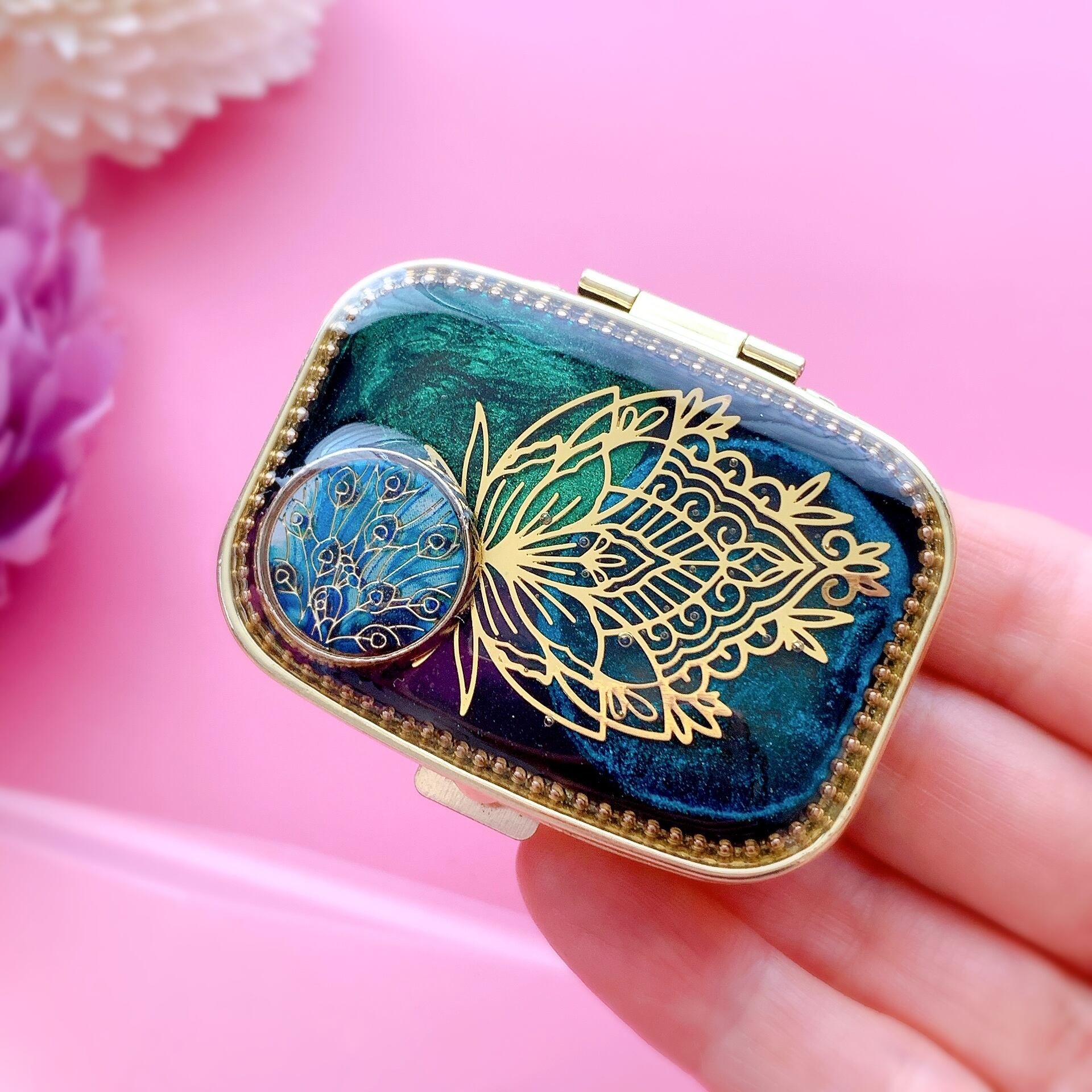 ジュエリーケース 孔雀 くじゃく [ オーロラグリーン ]鏡付き / petiterara 宝石箱 透かし