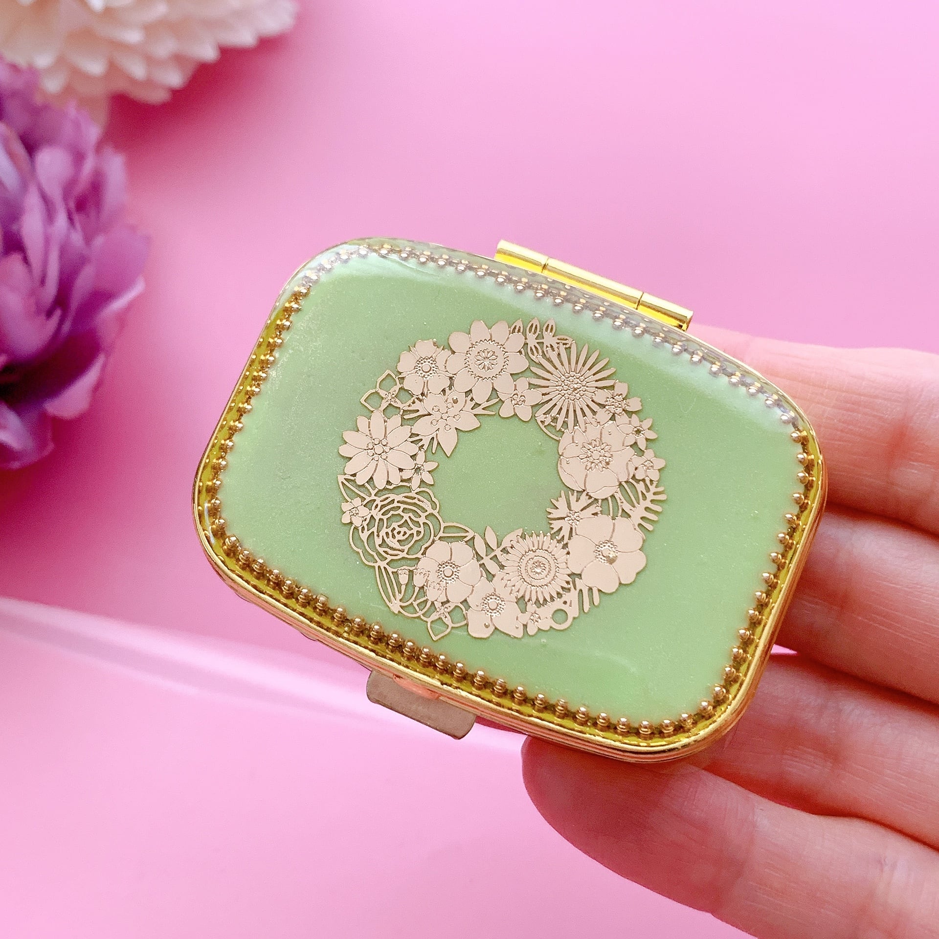ジュエリーケース フラワーリース [ ピスタチオ ゴールド ]鏡付き / petiterara 宝石箱 透かし