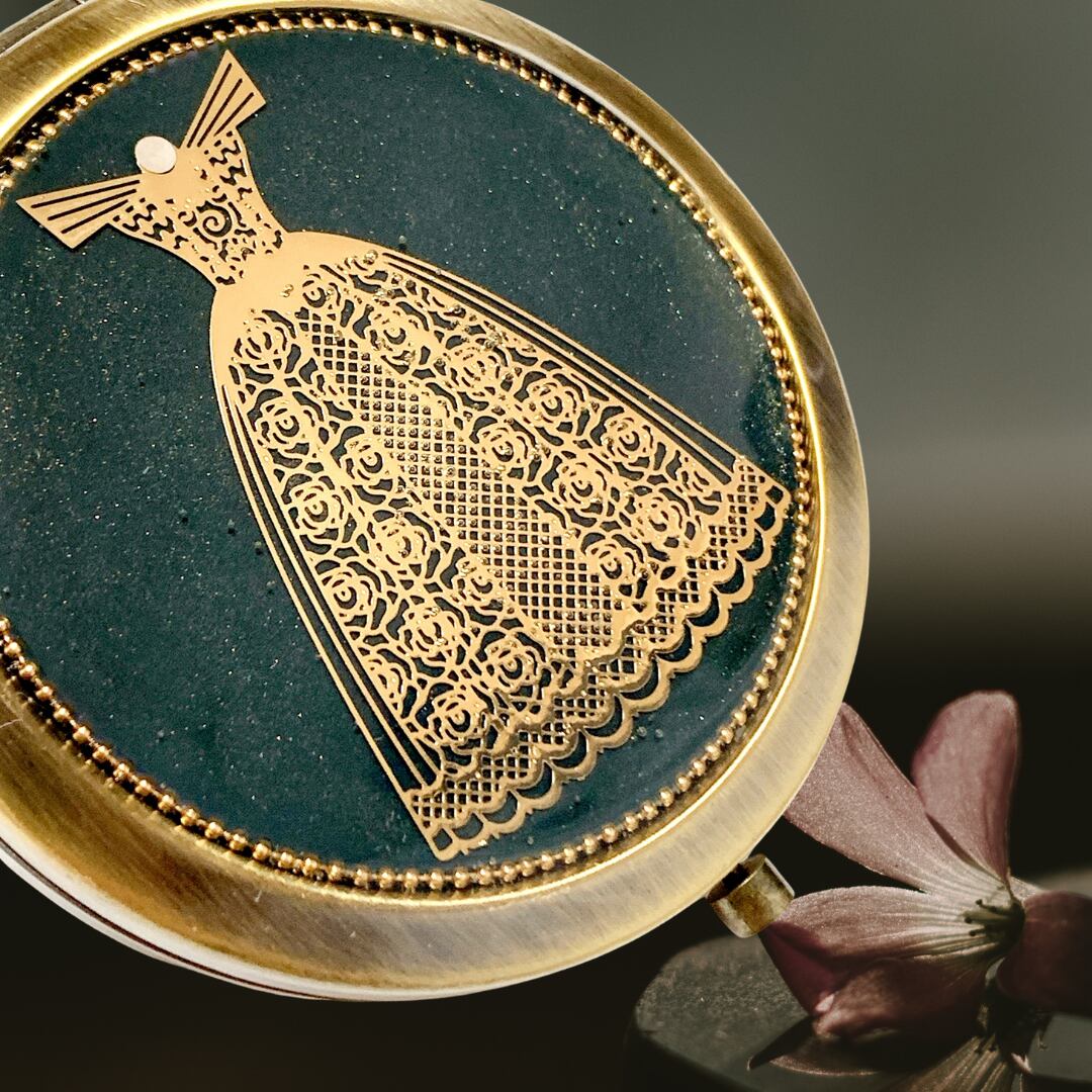 ドレスミラーコンパクト [ ローズとレース ]フォレストグリーン / 両面 コンパクトミラー 結婚式 ドレス